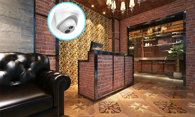 大厅中央配备高密度无线吸顶式AP,高峰期多终端接入无压力;用餐区域配备红外半球摄像机,小巧隐蔽,形成无死角监控: