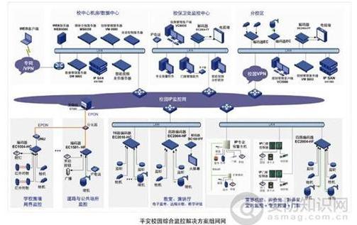 包括配置视频管理服务器、数据管理服务器和视频存储IPSAN的信息中心、分校区分控中心和保卫处应急指挥中心,保卫处应急指挥中心可以配置解码器实现电视墙控制。可以选择接入分校区图像或将本校区的图像传送到上级主管部门。中心平台采用开放架构,支持多种智能业务扩展,如基于智能视频分析的虚拟周界,和门禁、入侵报警、重要机房SCADA的联动集成等。